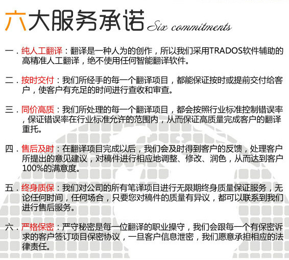 從客戶需求出發,提供人性化服務,免費修改譯文,對譯文終身負責,提供滿意的售后服務。翻譯歸根到底是基于行業知識的技術勞動,有時根據客戶需要和實際場景譯文會有補充和修改,長期愉快的合作需要相互理解、溝通和支持。